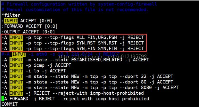 今web服务器一直都有syn flood攻击。查阅了Google后方得到一些有效资料