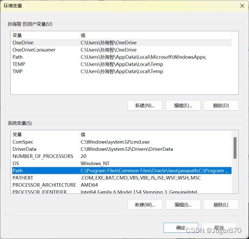 4.删除Oracle\Java\javapath ,并将前面JDK bin目录的路径粘贴进去 - 确定。即完成了Java环境的配置。