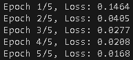 print(f"Epoch {epoch+1}/{epochs}, Loss: {avg_loss:.4f}")