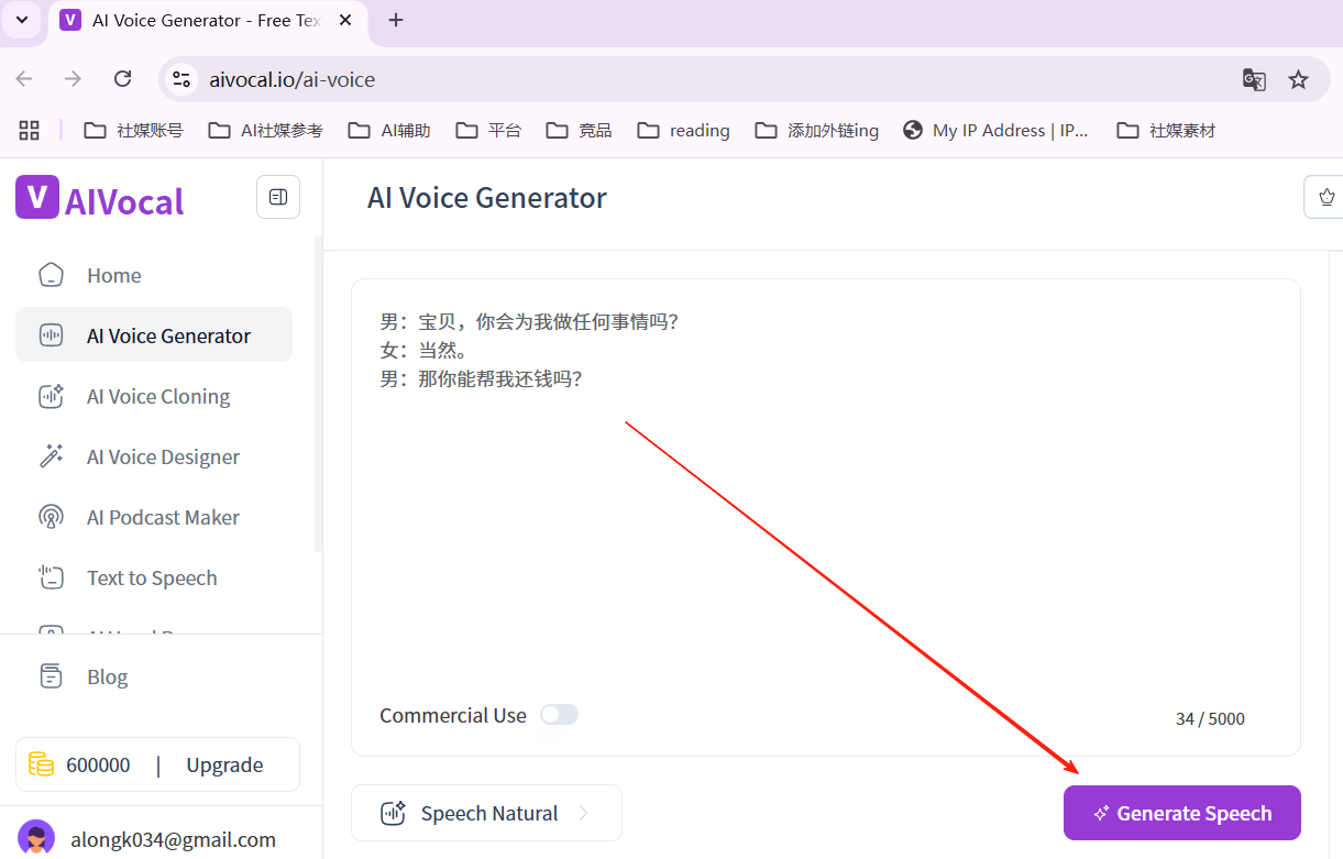 点击“生成”按钮,AI 将在数秒内处理文本并生成语音。用户可立即预览音频,确保效果符合预期。AIVocal.io 的生成速度快,音频质量高。