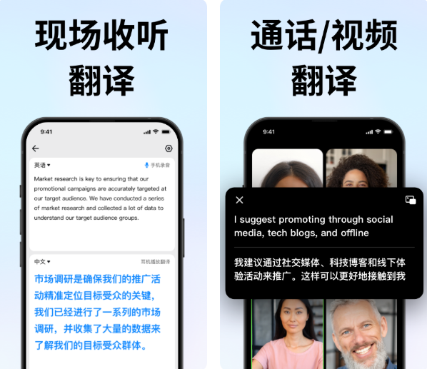 核心优势: 支持107种语言的全场景翻译工具,涵盖语音、字幕、电话、视频、网课等多种场景。操作简单,翻译高效,特别整合了实时同传、拍照翻译、语音转文字等实用功能。