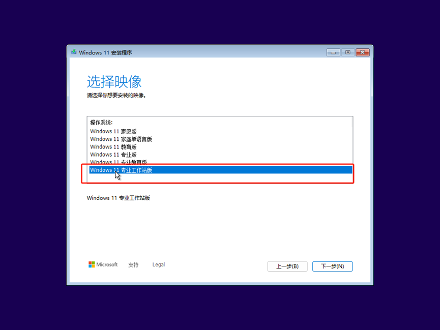 2. 选择 Windows 专业工作站版作为母盘(最完整组件)