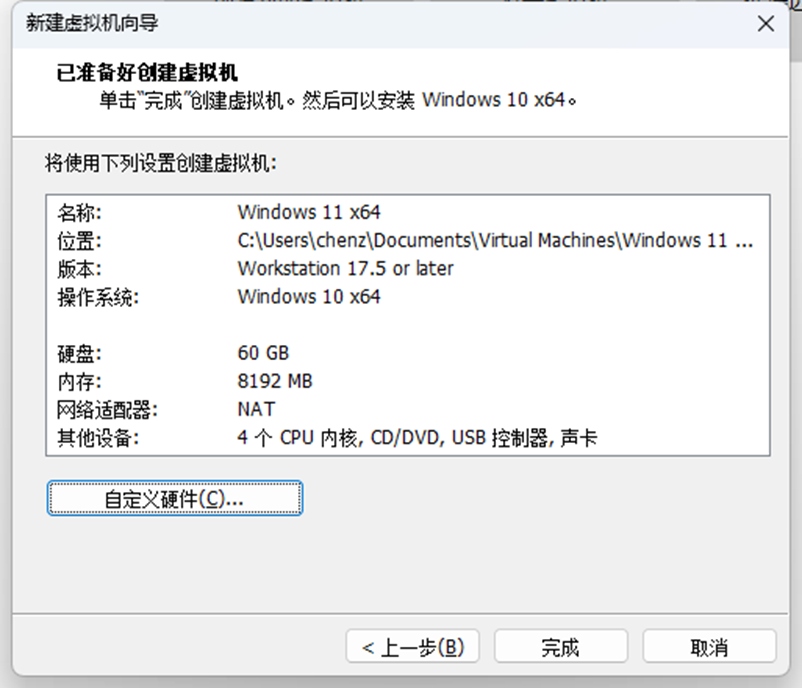 ✔ 安装 VMware 并创建虚拟机(选择 Win10 避免 TPM 检查)