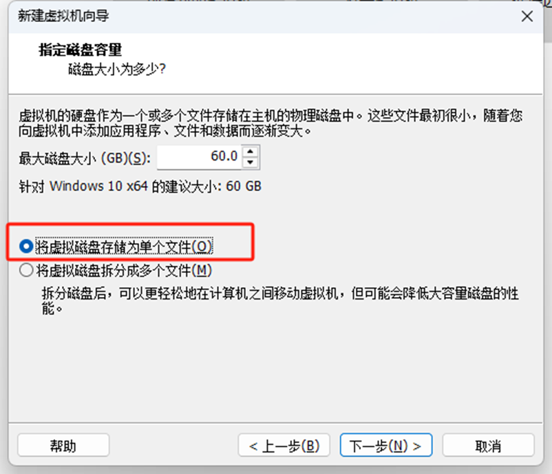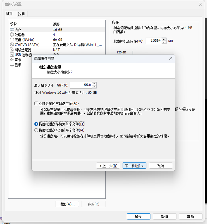 4. 硬盘选择存为单个文件 → 自定义硬件