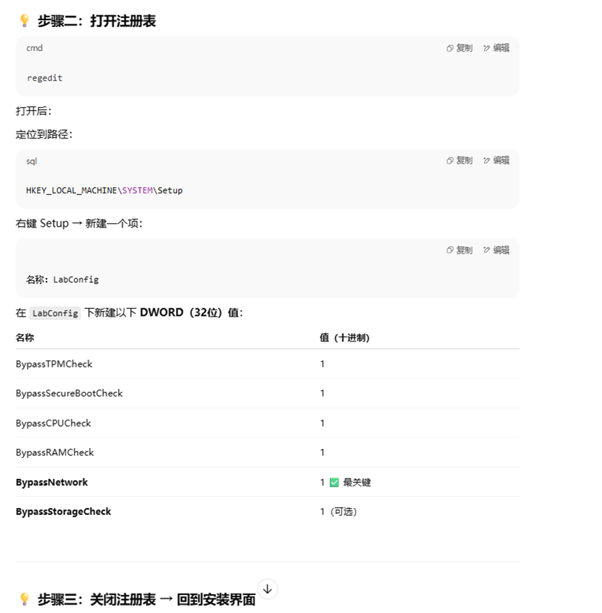 ✔ 安装 Windows 系统并跳过联网和TPM检测