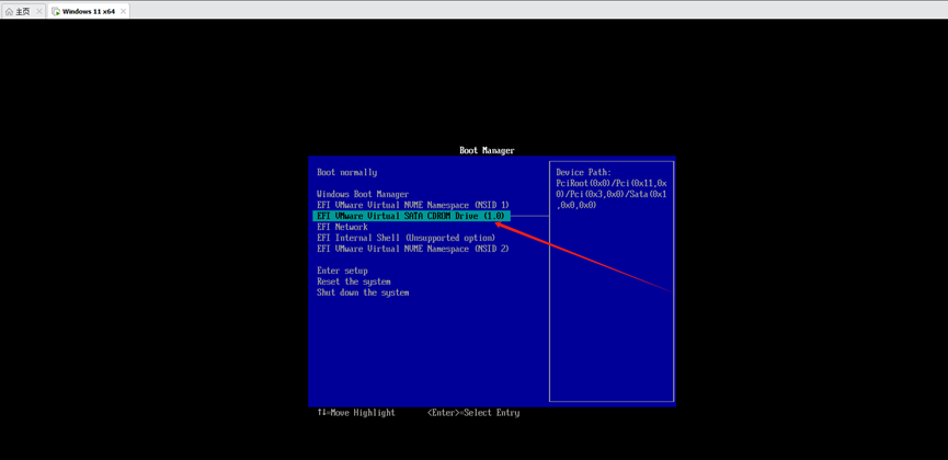 6. 启动虚拟机 → F2 进入 BIOS → 从 CD-ROM 启动