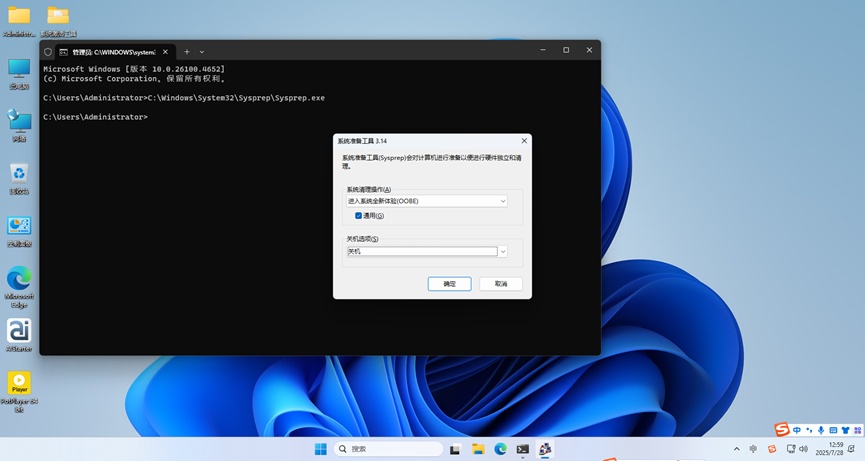 4. Sysprep 封装完成后请勿重启虚拟机,以免重置失效