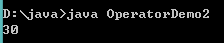 /* * 赋值运算符 * +=, -=, *=, /=, %= : * 上面的运算符作用:将等号左右两边计算,会将结果自动强转成等号左边的数据类型,再赋值给等号左边的 * 注意:赋值运算符左边必须是变量 */ public class OperatorDemo2 { public static void main(String[] args) { byte x = 10; x += 20;// 相当于 x = (byte)(x+20); System.out.println(x); }