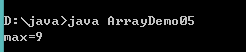 public class ArrayDemo05 { public static void main(String[] args) { int[] arr = { 4, 1, 6, 3, 9, 8 }; // 定义一个数组 int max = arr[0]; // 定义变量max用于记住最大数,首先假设第一个元素为最大值 // 下面通过一个for循环遍历数组中的元素 for (int x = 1; x < arr.length; x++) { if (arr[x] > max) { // 比较 arr[x]的值是否大于max max = arr[x]; // 条件成立,将arr[x]的值赋给max } } System.out.println("max=" + max); // 打印最大值 } }