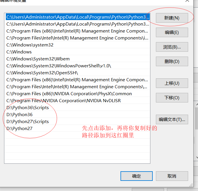 如果在环境变量里面没有自己安装的Python2和Python3的路径,就需要手动添加