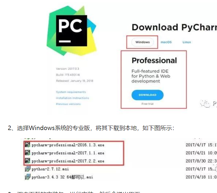1、首先去Pycharm官网,或者直接输入网址:http://www.jetbrains.com/pycharm/download/#section=windows,下载PyCharm安装包,根据自己电脑的操作系统进行选择,对于windows系统选择下图的框框所包含的安装包。