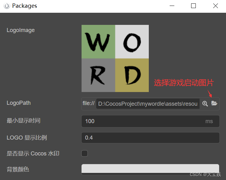 如果不设置这个,在游戏启动时会默认加载Cocos Creator的Logo图片。官方推荐的图片尺寸是144 X 144像素。