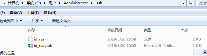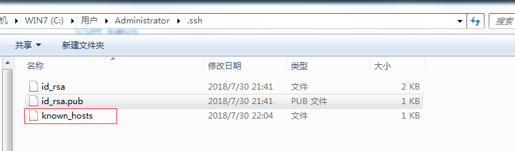 在C:\Users\Administrator文件夹中会生成一个.ssh的文件夹