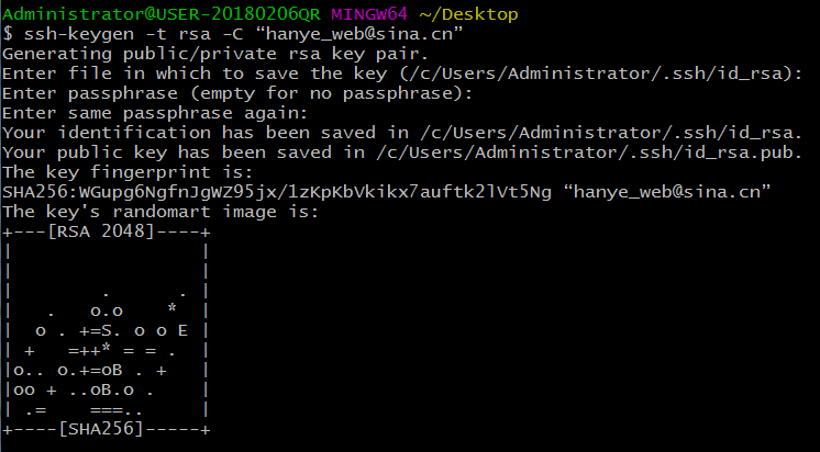 ssh-keygen -t rsa -C “hanye_web@sina.cn”
