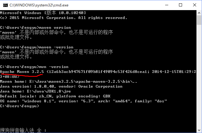 4、win+R,输入cmd,打开dos终端输入mvn -version,检查maven是否配置成功。