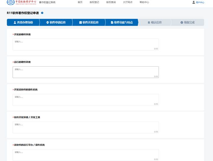 填写软件开发信息