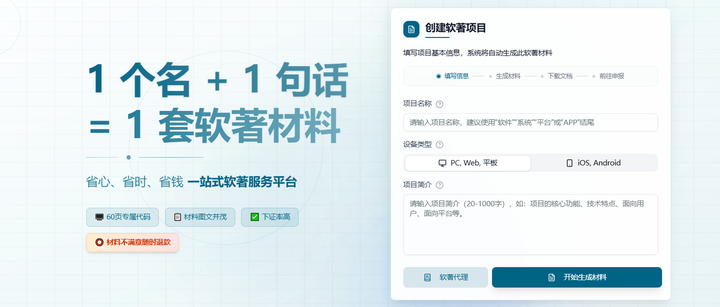 ⭐写软著申请材料对于很多第一次申请的人来说有难度,建议使用语流软著宝,语流软著宝是一个专注于提升软著申请效率的AI工具,依托数千次真实软著申请经验,严格遵守鉴别材料的格式和质量要求,一键生成格式、用语、技术交底符合鉴别标准的高质量文档,辅助软著代理、高新技术企业等机构和个人快速完成软著申请材料的准备。