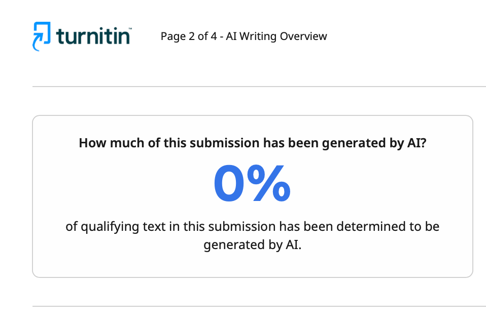 英文论文的效果也很显著。Turnitin的AI率降到了0%