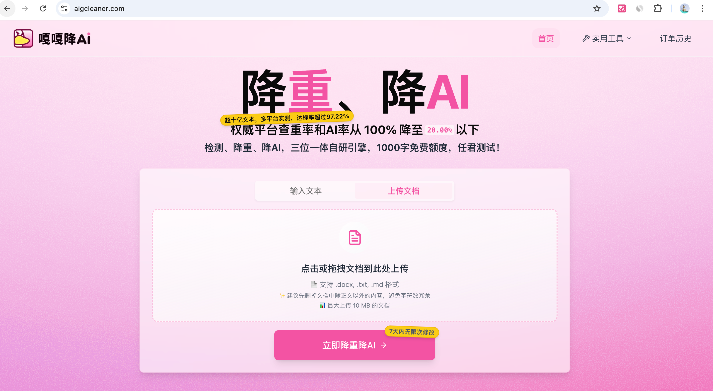 - 低风险高信誉机制: 针对学生最关心的结果问题,嘎嘎降AI明确承诺:如果未能将AI率降低到20%以下,将全额退款。 这一保障机制极大地降低了学生用户选择专业服务的风险。