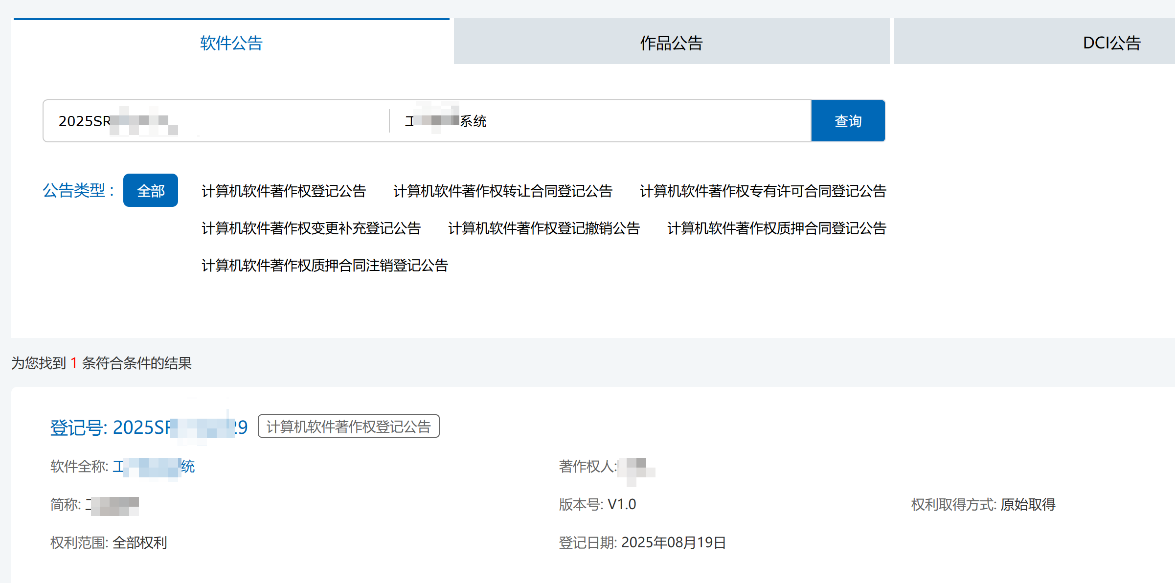 该系统仅展示已公开登记的软著信息,并非实时更新,有延迟。并且不包含正在审核中的申请数据。此外,部分早期登记信息可能因历史原因无法查询。