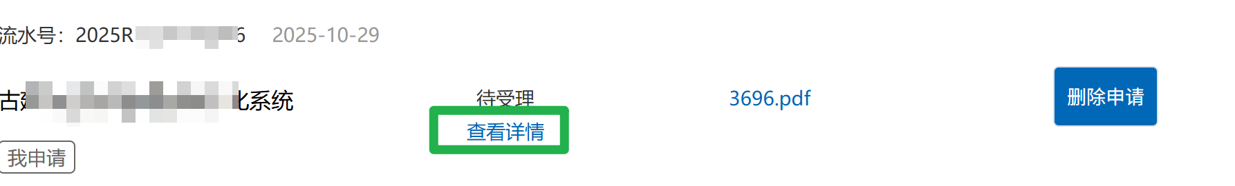 在版权中心个人中心里,找到需要查看的申请记录,点击查看详情,滑倒最底部,可以看到软著的当前审核状态。
