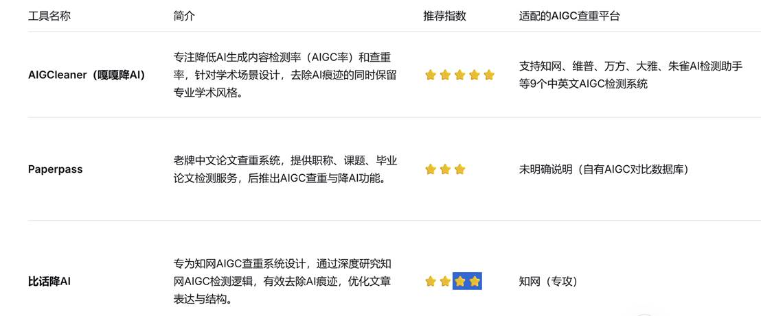 适合DDL临近、手动修改耗时的情况,使用降Ai率工具也是一种高效的办法。根据2025年实测的20款降AI工具,推荐3个知名度高的去AIGC痕迹网站,使用用户都是数以万计。