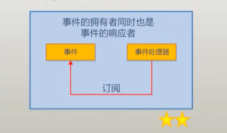 例2:两星的情况,特点是事件的拥有者和事件的响应者是同一个对象,即一个对象拿着自己的方法去订阅和处理自己的事件