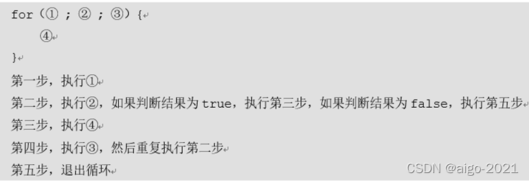 如果用①表示初始化表达式、②表示循环条件、③表示操作表达式、④表示循环体,则for循环的执行流程如下所示: