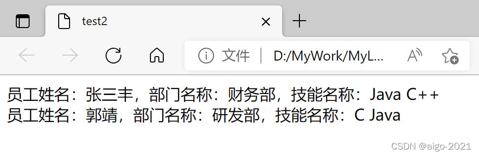 提示:在js中定义一个数组,存储两个员工对象,员工与部门是一对一,员工与技能是一对多。
