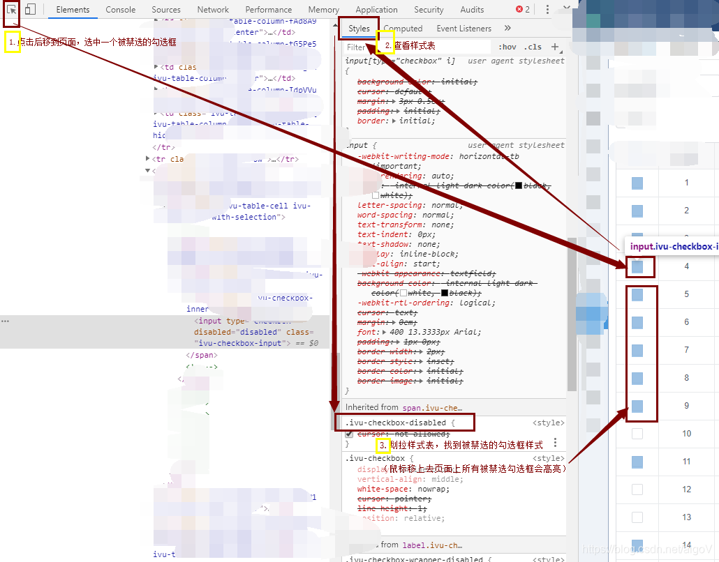 2.1 按以下方法找到被禁选的勾选框的样式
