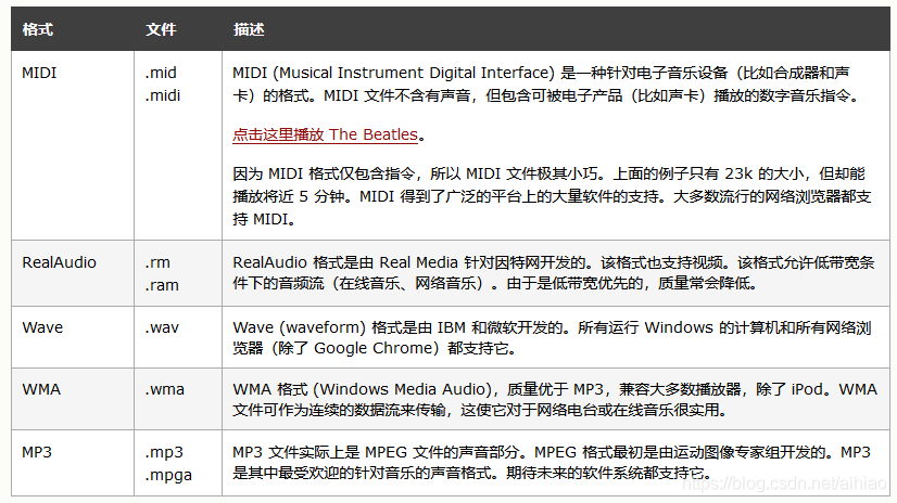 3.2. 确定媒体类型的最常用的方法是查看文件扩展名。当浏览器得到文件扩展名.htm或.html时, 它会假定该文件是html页面。图片格式则通过.gif或.jpg来识别。多媒体元素元素也拥有带有不同扩展名的文件格式, 比如 .swf、.wmv、.mp3 以及 .mp4。