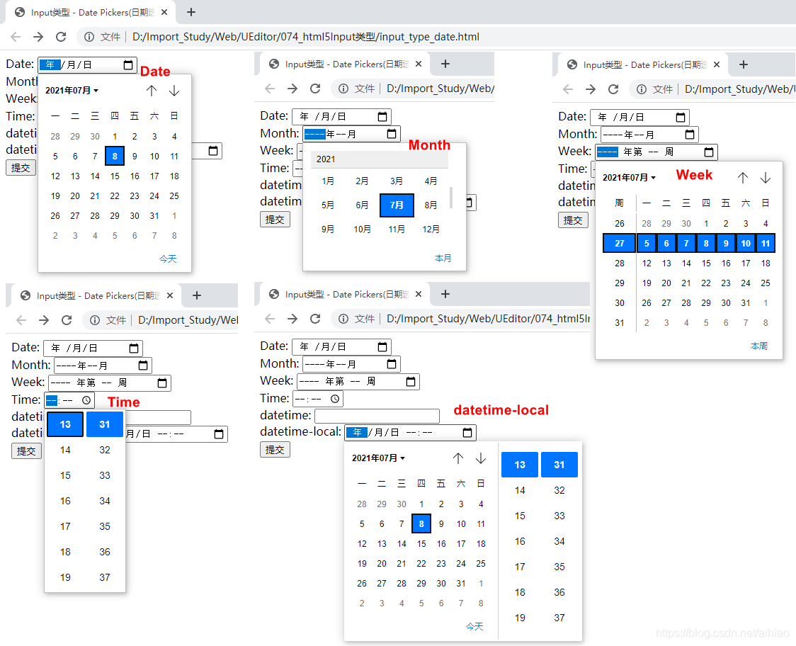 - datetime-local - 选取时间、日、月、年(本地时间)