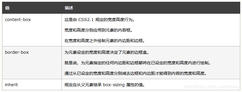 box-sizing: content-box|border-box|inherit;