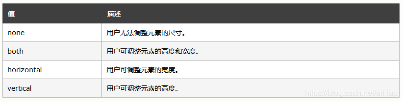 3.1. resize属性规定是否可由用户调整元素的尺寸。