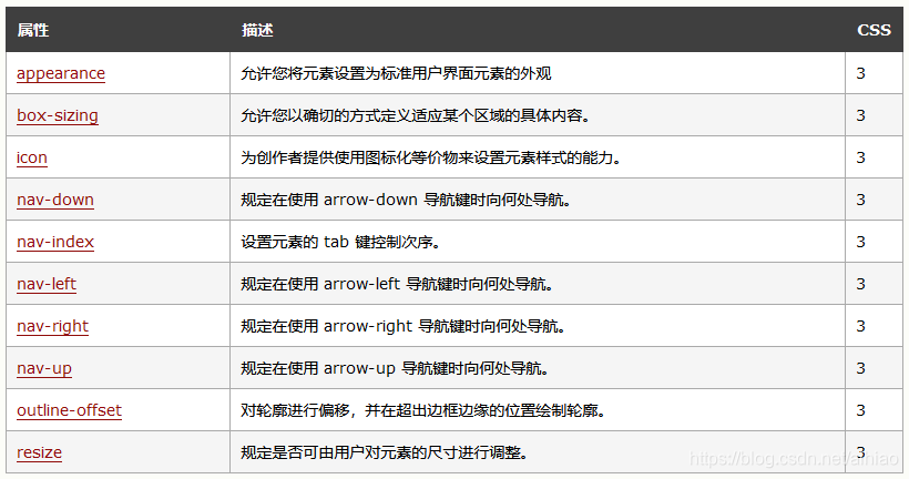 1. 在CSS3中, 新的用户界面特性包括重设元素尺寸、盒尺寸以及轮廓偏移等。