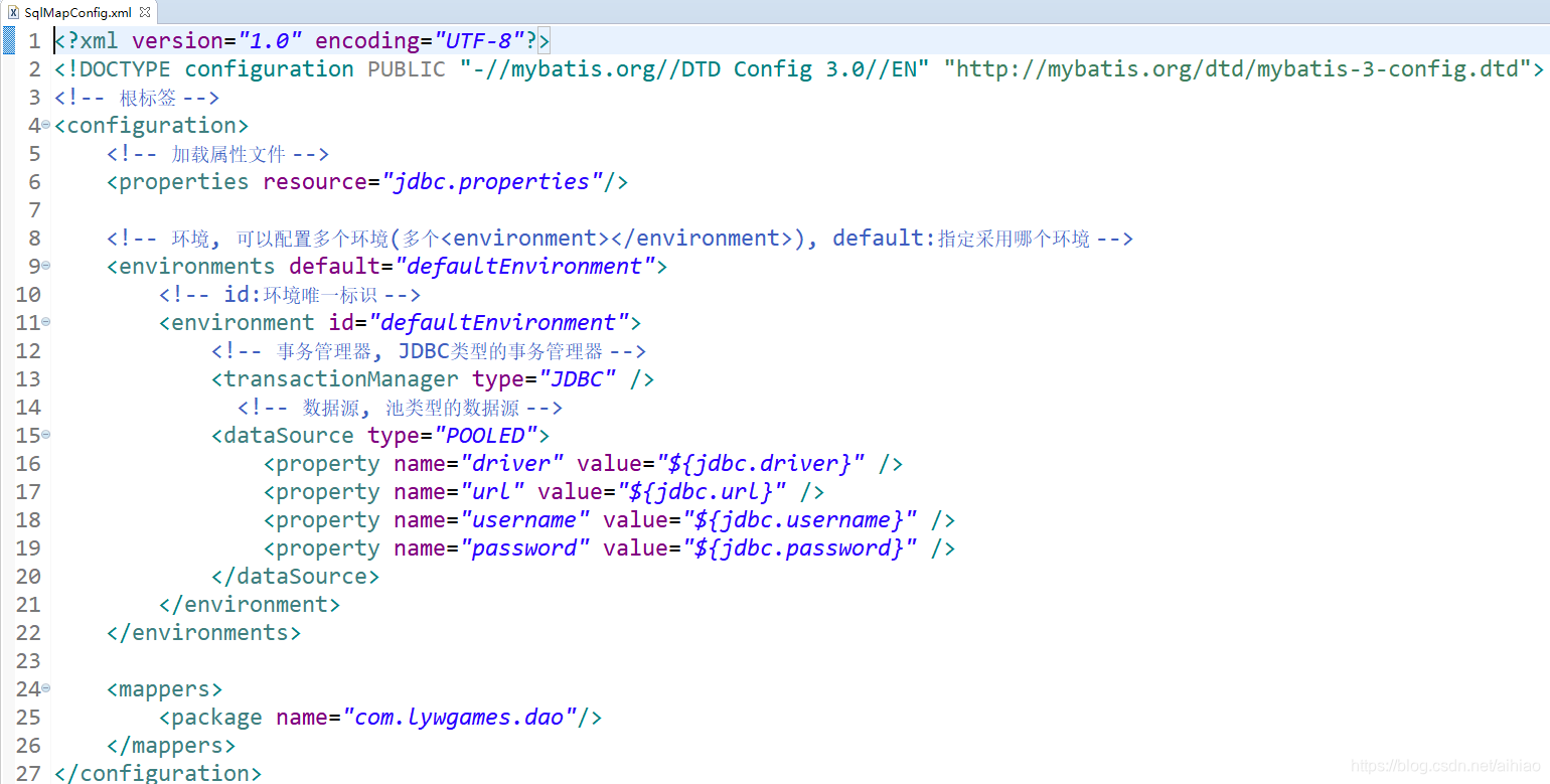 6. 在src目录下新建SqlMapConfig.xml数据库配置文件