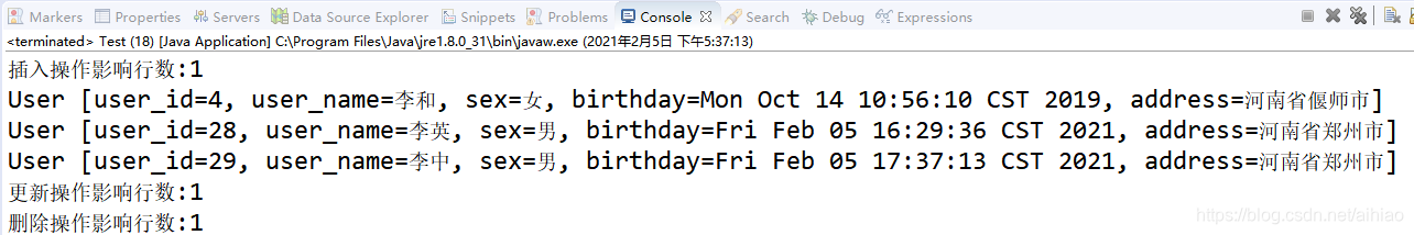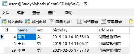 User insertUser = new User("李中", "男", new Date(System.currentTimeMillis()), "河南省郑州市");
