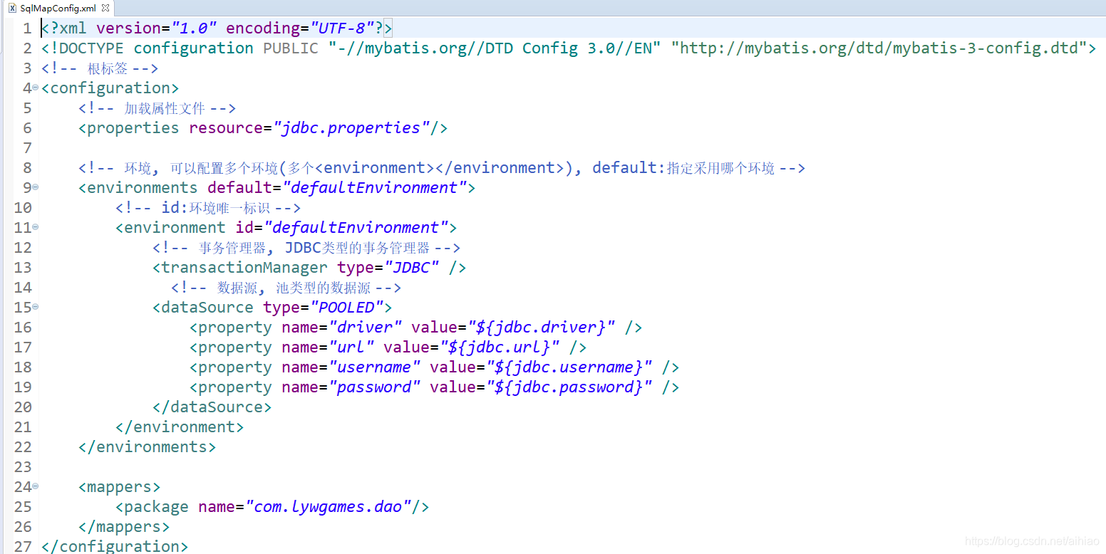 6. 在src目录下新建SqlMapConfig.xml数据库配置文件