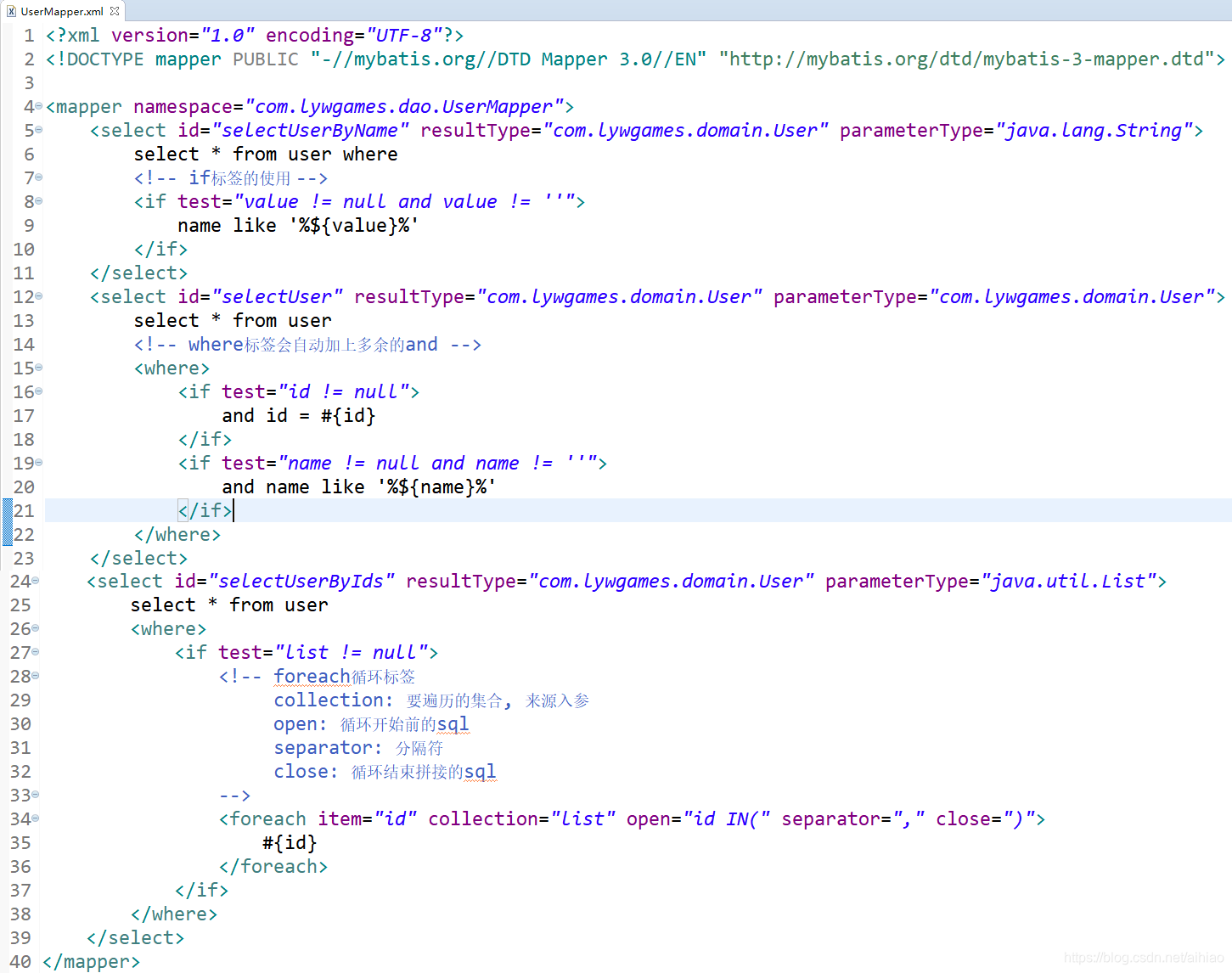4. 在和UserMapper.java接口同一目录下新建UserMapper.xml映射文件