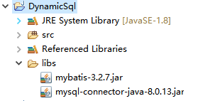 1. 新建一个名为DynamicSql的Java工程, 拷入相关jar包