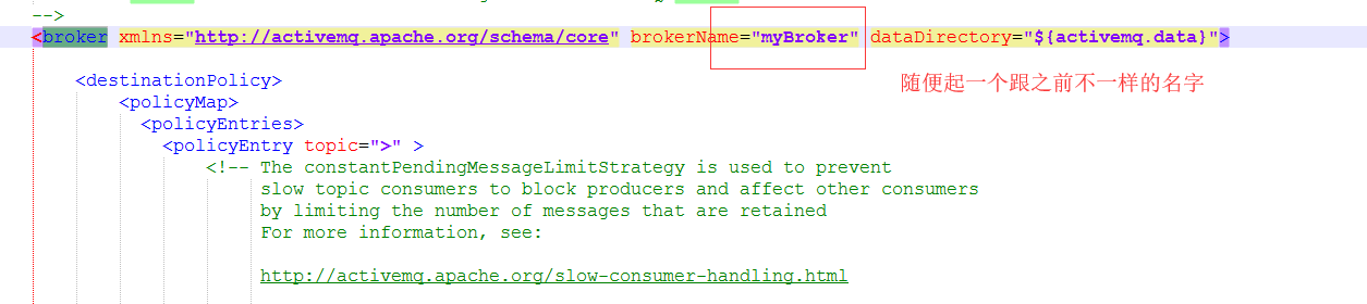 2. 修改activemq.xml中的brokerName不能跟之前的一样。如: