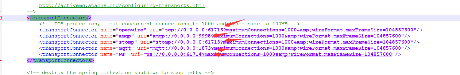 4. 修改所有的transportConnectors端口,都要跟之前的不一样