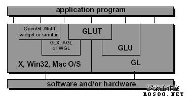 glx,agl,wgl:窗口库,分别针对unix,linux,ios,windows