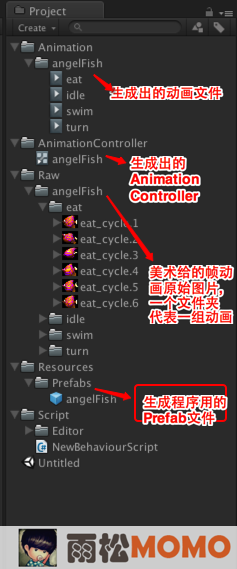 我们的目标是Raw文件夹下放所有美术提供的帧动画,每个文件夹就是一组帧动画,文件夹名子就是动画的名子,代码如下所示。