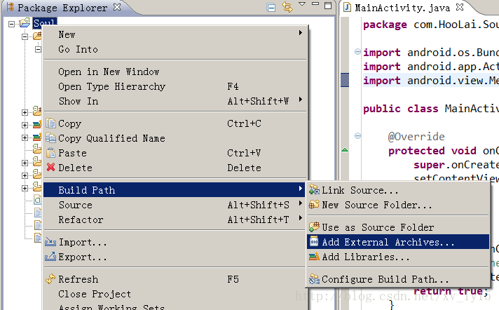 4. 导入jar后,就可以开始编辑相关的函数了,打开MainActivity