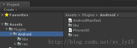 2. 在Assets目录下添加Plugins\Android目录,把Android的jar文件,res文件夹,libs文件夹,xml文件放入该目录