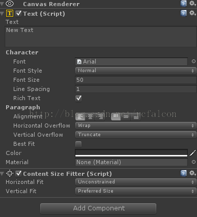 给文本框设置组件如下:(添加Content Size Filter组件)