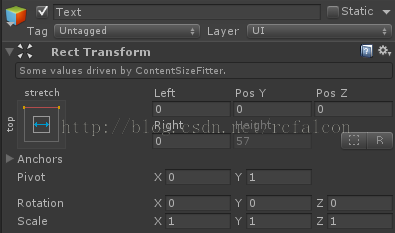注意,这样设置后文本多的情况下滚动条会直接初始在中间,我们需要顶部对齐,设置Text的RectTransform属性如下: