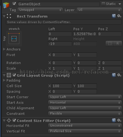 同理,我们需要做Grid的话,只需要将scroll rect的content指向一个带GridLayout的GameObject,并且将这个GameObject设置Content Size Filter和锚点即可。