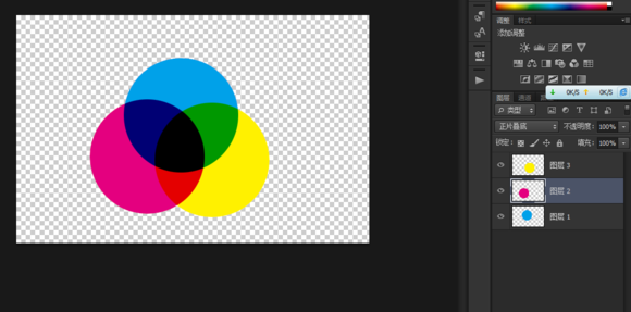 C表示的是青色;M表示的是品红色(PS中叫洋红色);Y表示的是黄色。如果各位有机会的话,可以将彩色打印机拆开看看,颜料盒至少有三个(其实至少有四个,后面会解释),分别是青色、洋红、黄色。理论上用这三种颜料的不同配比可以配出任何一种颜色。并且“100%的青色”+“100%洋红色”=蓝色;“100%青色”+“100%黄色”=绿色;“100%洋红色”+“100%黄色”=红色;“100%的青色”+“100%洋红色””+“100%黄色”=黑色。在PS中,为了再现这种颜色的配色模式,出现了“正片叠底”的混合样式。